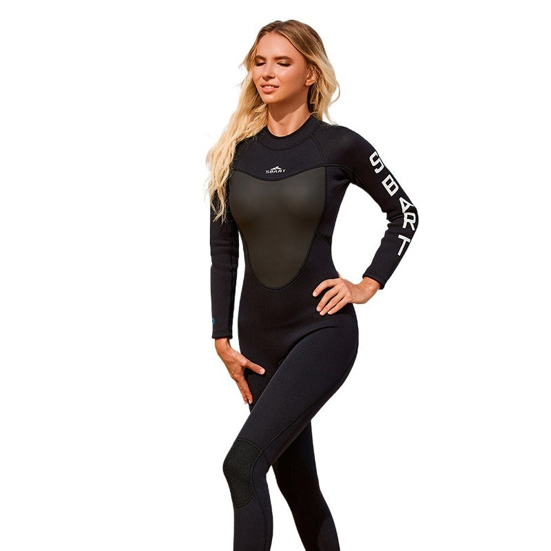3MM diving suit women's one-piece solid color long-sleeved rear zipper warm and cold-proof jellyfish neoprene deep snorkeling hydrosuit