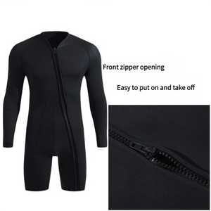 The diving suit is an essential piece of equipment for divers, designed to provide warmth and protection in various underwater environments. Made from neoprene, a flexible and insulating material, it helps to maintain body temperature by retaining heat and reducing water flow against the skin. Available in different thicknesses for varying water conditions, the diving suit ensures comfort and safety, allowing divers to explore the underwater world with confidence and ease.