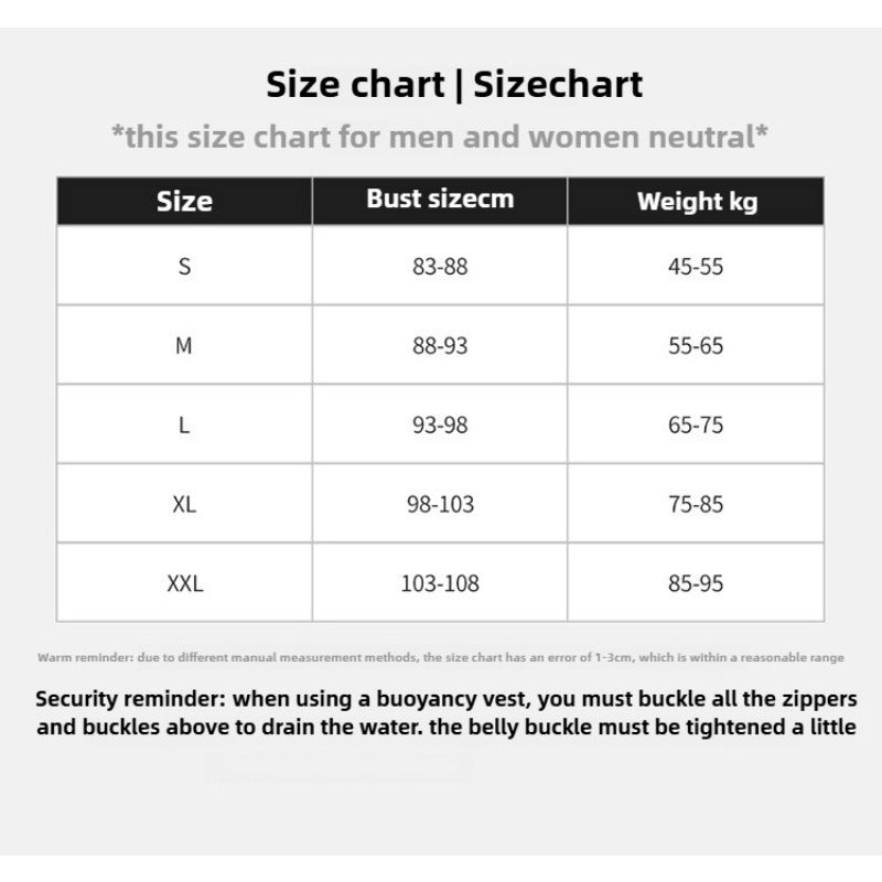 - SIZING – This life jacket follows the sizing determined by the USGC and is designed to fit adults that weigh over 90 pounds with a chest size of 32.5-35 in. For your convenience, please know that the Burnsurf life jackets may feel snug or run a little small. If you are unsure or in between sizes, we would recommend choosing the larger size