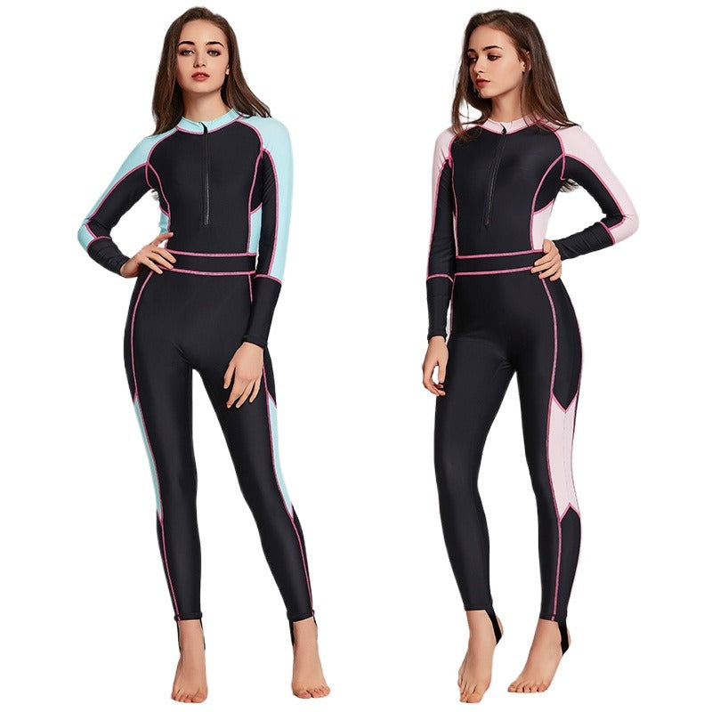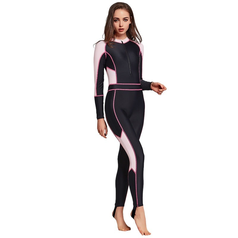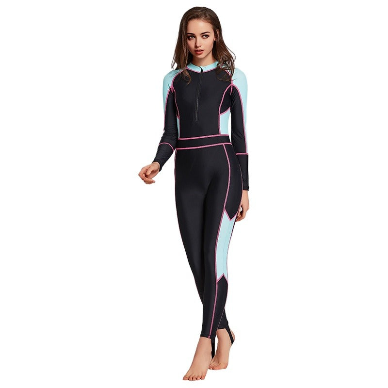 Women's one-piece wetsuit, sunscreen, long-sleeved swimsuit, snorkeling suit, slim, comfortable and conservative swimsuit