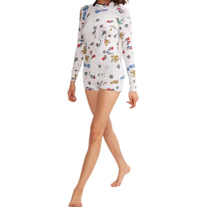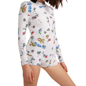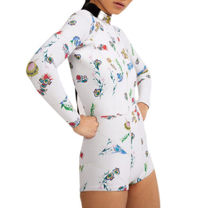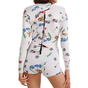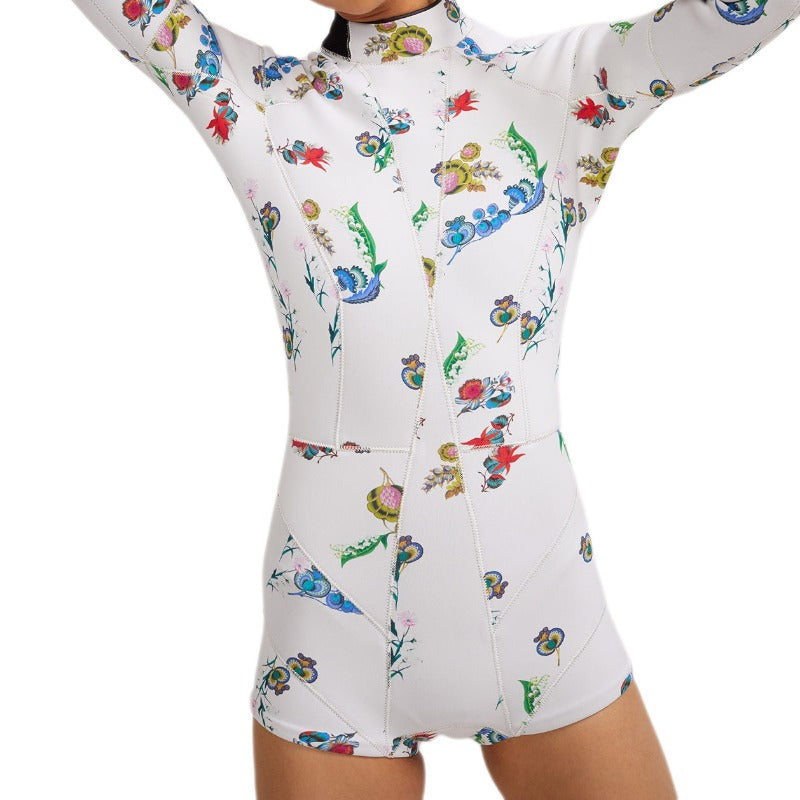 Our wetsuits are made from 2.0 MM Fiber-Lite Neoprene with durable bonded seams and coverstitch detail. They feature a covered back zip with a nylon pull, a secure Velcro closure at the neck, and a zip coin pocket on the lower back. The stylish polka dot design provides SPF 50+ protection. The shell is 100% nylon, while the trim is 80% nylon and 20% spandex. For care, hand wash and hang to dry.